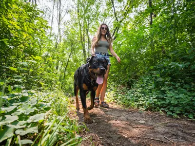 As a courtesy to other trail users, you must keep your dog on a leash at all times on public trails as per Township By-law #36-93. This By-law also states that dog owners must clean up after their pet. Owners are liable for their dog's actions under the Ontario Dog Owners Liability Act. Both offences carry a fine up to $350. Dog waste must be bagged and disposed of in the proper manner. The Township's Animal Control Officer monitors trail usage by dog owners.