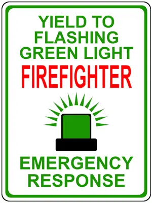 While it is the law to pull over and slow down safely for emergency vehicles with flashing lights such as fire trucks, police and ambulances, it is not the law to do so for volunteer firefighters running green lights. The flashing green light does not give volunteer firefighters exemptions from, or extra privilege’s within the Highway Traffic Act. We must still abide by the rules of the road and are held accountable just the same. Pulling over and yielding the right of way to a firefighter with flashing green lights is merely a courtesy, and will help allow the firefighter to get to the station or scene during an emergency call quickly.